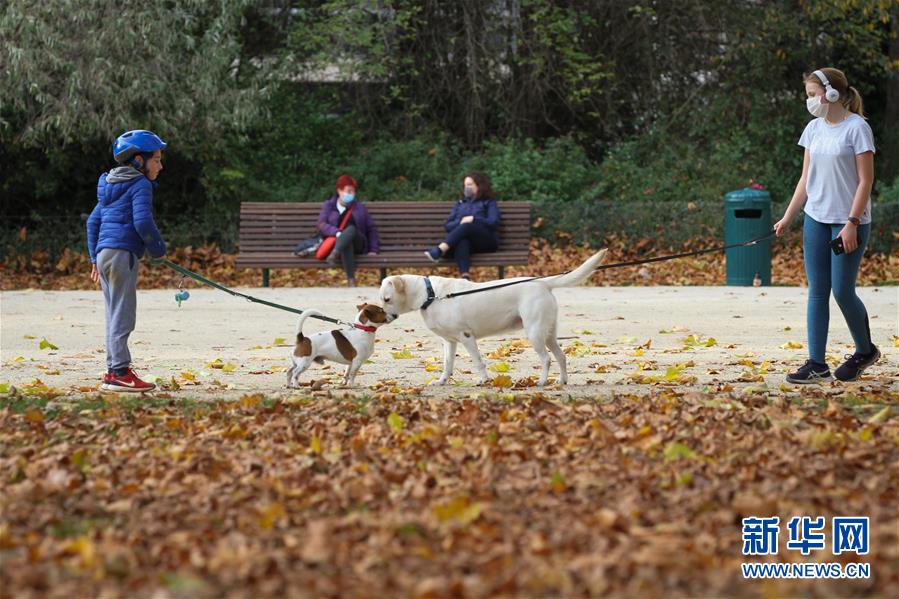 11月8日,人们在比利时布鲁塞尔的五十周年纪念公园里遛狗。 比利时国家公共卫生研究所9日发布的新冠疫情数据显示,该国累计确诊病例达500789例。 新华社记者 郑焕松 摄
