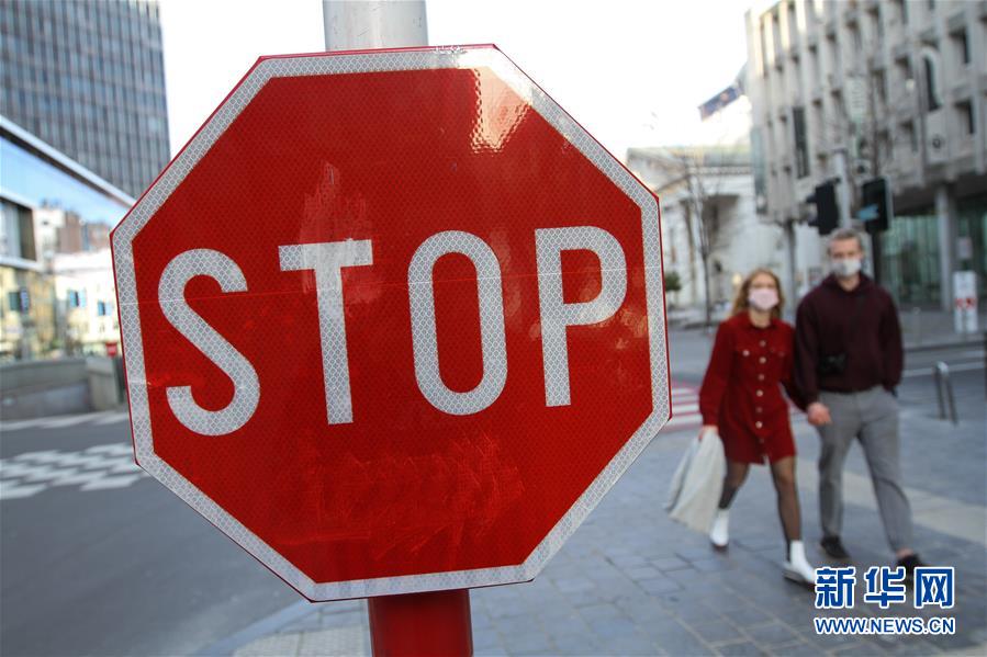 11月8日,戴着口罩的行人走在比利时布鲁塞尔街头。 比利时国家公共卫生研究所9日发布的新冠疫情数据显示,该国累计确诊病例达500789例。 新华社记者 郑焕松 摄