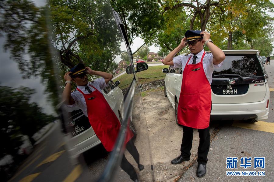 11月9日,在马来西亚首都吉隆坡市郊,阿兹林整理制服,准备开始工作。新华社发(张纹综 摄)