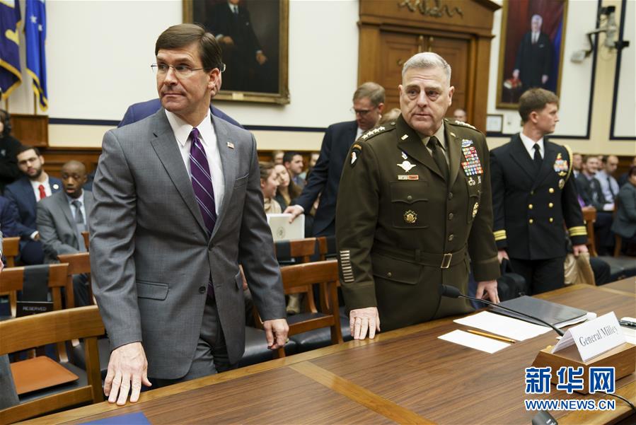 美国总统特朗普11月9日宣布,解除国防部长马克·埃斯珀的职务,任命全国反恐中心主任克里斯托弗·米勒为代理国防部长。 这是马克·埃斯珀(前左一)在美国华盛顿出席听证会的资料照片(2月26日摄)。 新华社发(沈霆 摄)