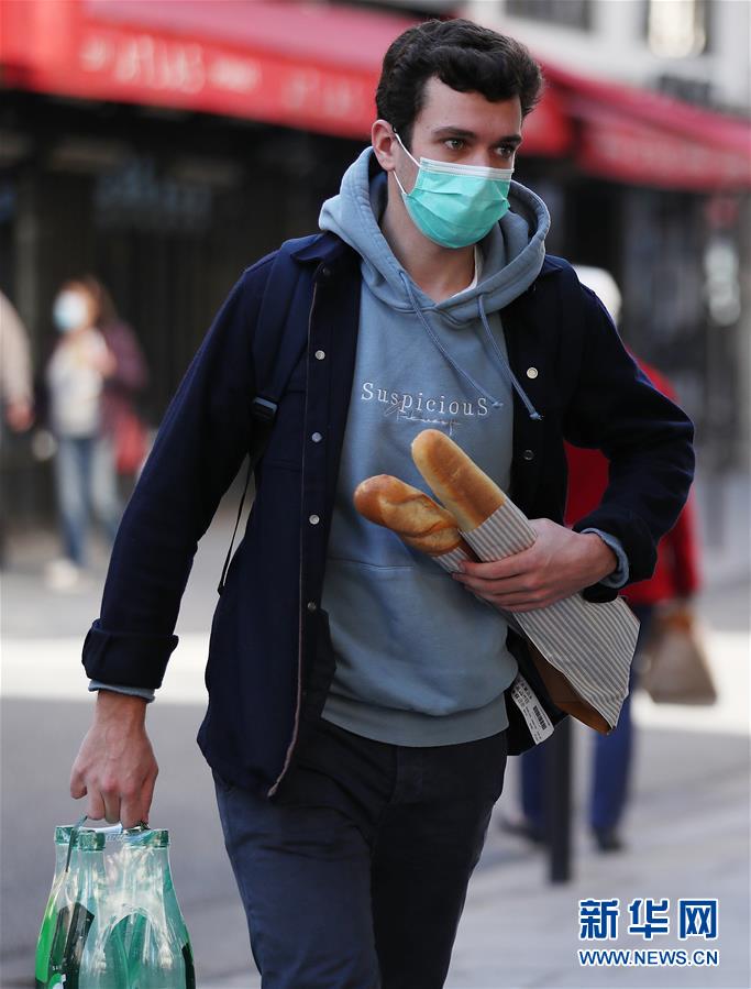 11月9日,一名提着食物的男子走在法国巴黎街头。 法国国民议会7日投票通过了延长“卫生紧急状态”的法案,“卫生紧急状态”将延长至2021年2月16日。 新华社记者 高静 摄
