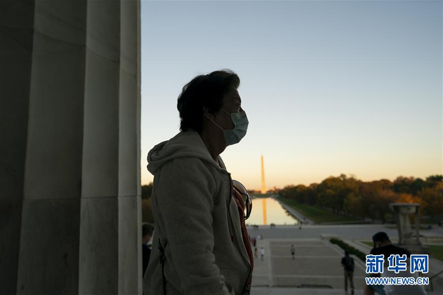 11月9日,在美国华盛顿,一名戴口罩的参观者在林肯纪念堂驻足。 美国约翰斯·霍普金斯大学9日发布的新冠疫情最新统计数据显示,美国累计确诊病例超过1000万例。截至美国东部时间9日13时25分(北京时间10日2时25分),美国累计确诊病例10018278例,累计死亡病例237742例。 新华社记者刘杰摄