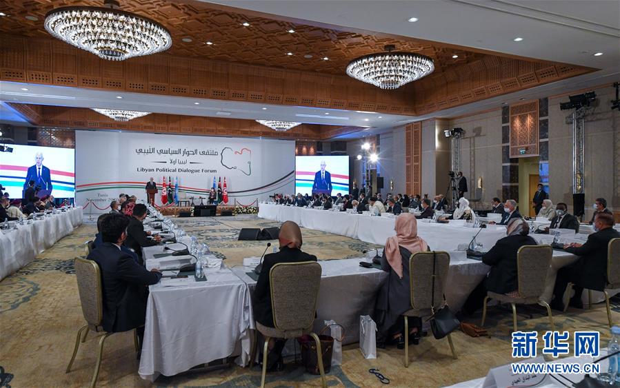 这是11月9日在突尼斯首都突尼斯拍摄的利比亚新一轮政治对话会议现场。新华社发 (突尼斯总统府供图)