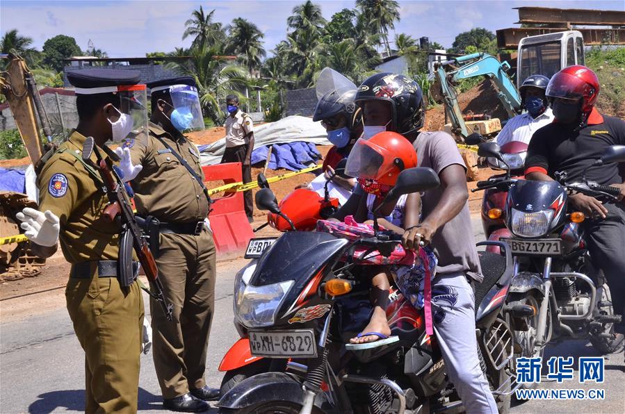 11月9日,在斯里兰卡科伦坡,警察在街头执勤。 为控制疫情蔓延,斯里兰卡自10月30日起在包括首都科伦坡在内的整个西部省实行宵禁。11月9日起, 西部省除被确定为疫情“高风险”的地区继续保持“隔离”外,其他地区开始解除宵禁,重新恢复经济活动。 新华社发(加扬·萨米拉摄)