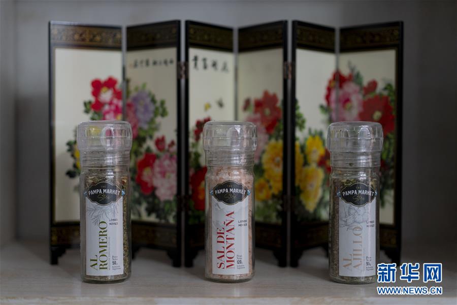 这是11月6日在阿根廷布宜诺斯艾利斯拍摄的跨境电商平台潘帕市场向中国出口的调味品。 主打食品的阿根廷跨境电子商务平台潘帕市场“备战”中国的“双十一”促销活动,让更多中国消费者品尝到来自阿根廷的美食。 新华社发(马丁·萨巴拉摄)