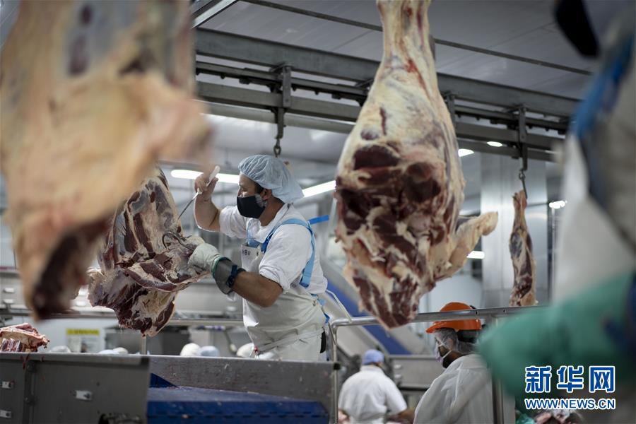 11月9日,在阿根廷埃斯科瓦尔,工作人员在跨境电商平台潘帕市场的牛肉加工厂内工作。 主打食品的阿根廷跨境电子商务平台潘帕市场“备战”中国的“双十一”促销活动,让更多中国消费者品尝到来自阿根廷的美食。 新华社发(马丁·萨巴拉摄)