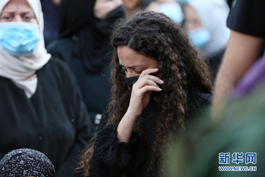 11月11日,在约旦河西岸城市杰里科,一名女子在巴勒斯坦高官埃雷卡特的葬礼上哭泣。