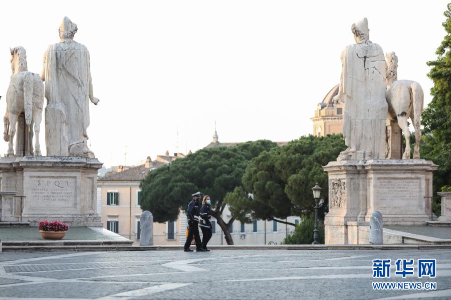 11月10日,在意大利首都罗马,警察戴着口罩执勤。新华社记者程婷婷摄
