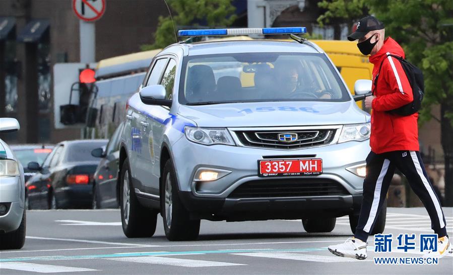 11月12日,市民戴着口罩在白俄罗斯首都明斯克市中心出行。 明斯克市政府决定12日起,人们在商场、学校、药店、体育场馆和银行等公共场所及乘坐公共交通工具时必须佩戴口罩。 新华社发(任科夫 摄)