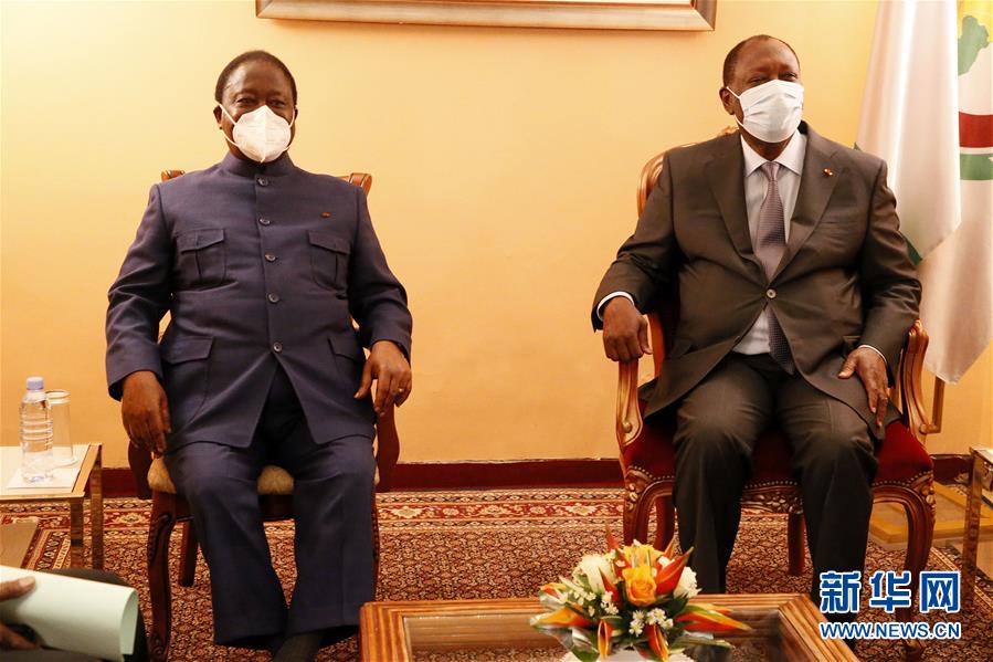 11月11日,科特迪瓦总统瓦塔拉与反对派代表、民主党主席、前总统贝迪埃在经济首都阿比让就解决因总统选举引发的危机举行对话,双方承诺将为实现国家稳定共同努力。 新华社发(伊万·宋 摄)