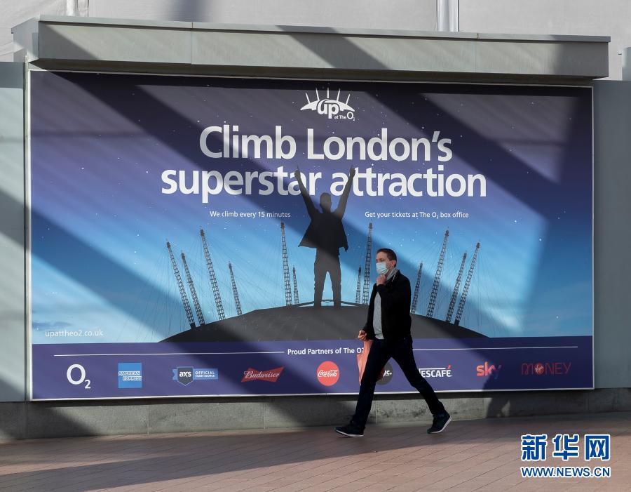 11月12日,一名戴口罩的男子在英国伦敦街头行走。