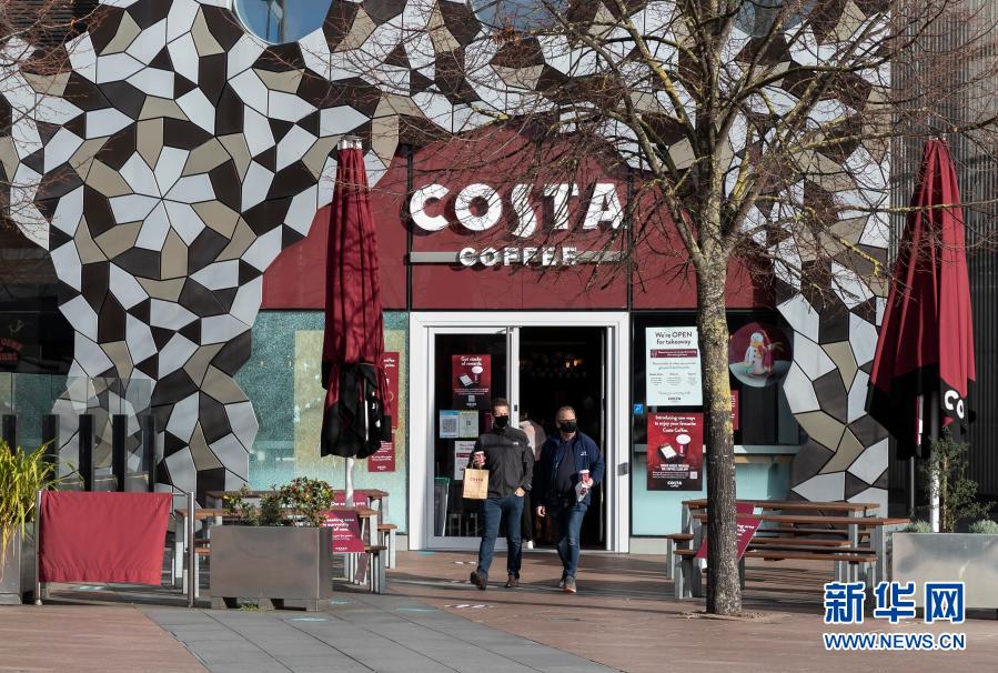 11月12日,戴口罩的男子走出英国伦敦一家咖啡厅。