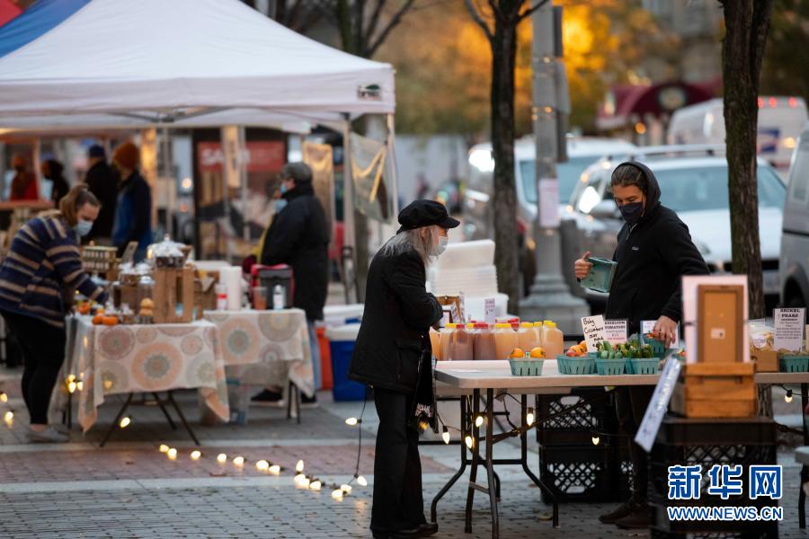 11月12日,人们在美国华盛顿的一处户外市场购物。世界卫生组织13日公布的最新数据显示,全球累计新冠确诊病例达52487476例。新华社记者 刘杰 摄