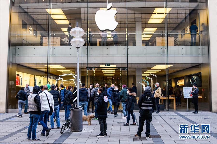 11月13日,在德国慕尼黑,戴口罩的人们等待进入一家商店。 世界卫生组织13日公布的最新数据显示,全球累计新冠确诊病例达52487476例。 新华社发(凯文·福格特 摄)