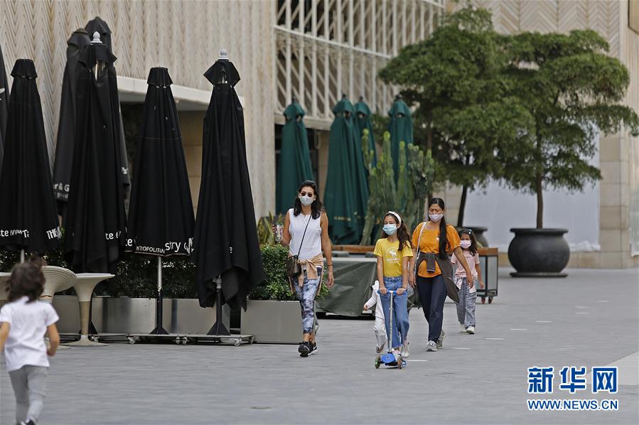 11月14日,在黎巴嫩首都贝鲁特市中心,民众佩戴口罩出行。 黎巴嫩政府宣布,自14日5时至30日5时全国“封城”。其间,每日17时至次日5时宵禁;车辆单双号限行;所有商场、餐馆、酒吧等关闭;海滩和公共泳池停止开放。 新华社发(比拉尔·贾维希 摄)