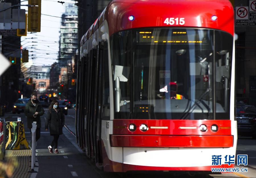 11月14日,在加拿大多伦多,戴口罩的乘客准备乘坐公交车。新华社发(邹峥摄)