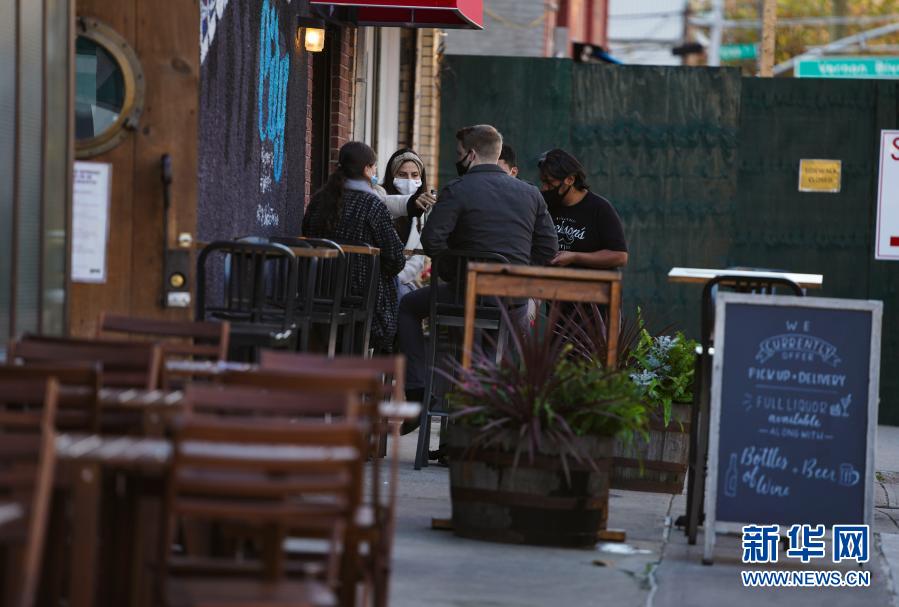 11月14日,在美国纽约,人们在餐厅的户外就餐区用餐。新华社记者 王迎 摄