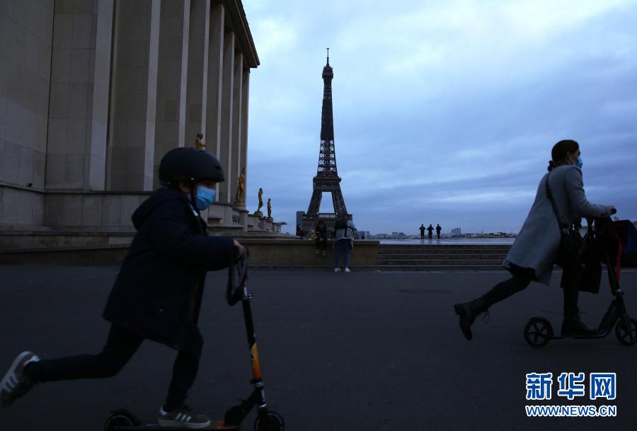 11月16日,人们经过法国巴黎埃菲尔铁塔附近的特罗卡德罗广场。
