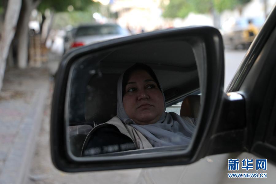 11月18日,纳伊拉·阿布·朱巴在加沙城驾驶出租车。