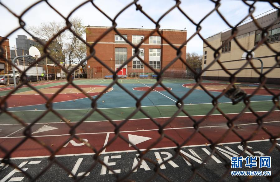 11月19日,在美国纽约,一所公立学校的操场上空无一人。纽约市长德布拉西奥18日宣布,纽约市公立学校19日起暂停线下授课,改为在线教学。新华社记者王迎摄