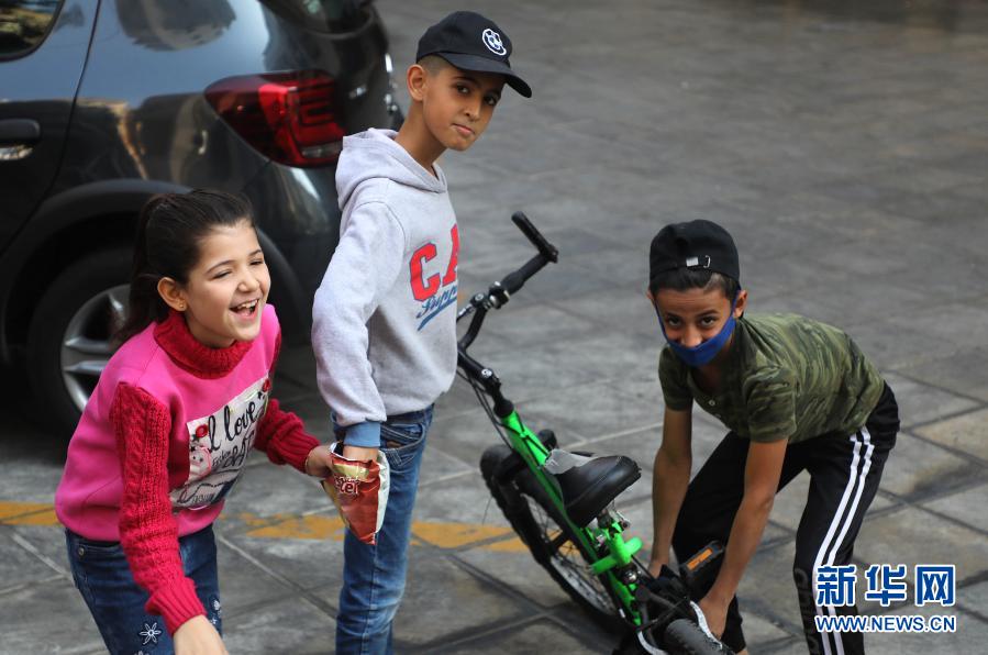 11月19日,在黎巴嫩贝鲁特,几名儿童在街头玩耍。