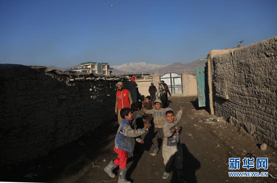 11月20日,在阿富汗喀布尔,当地儿童在一处无家可归者收容所内玩耍。