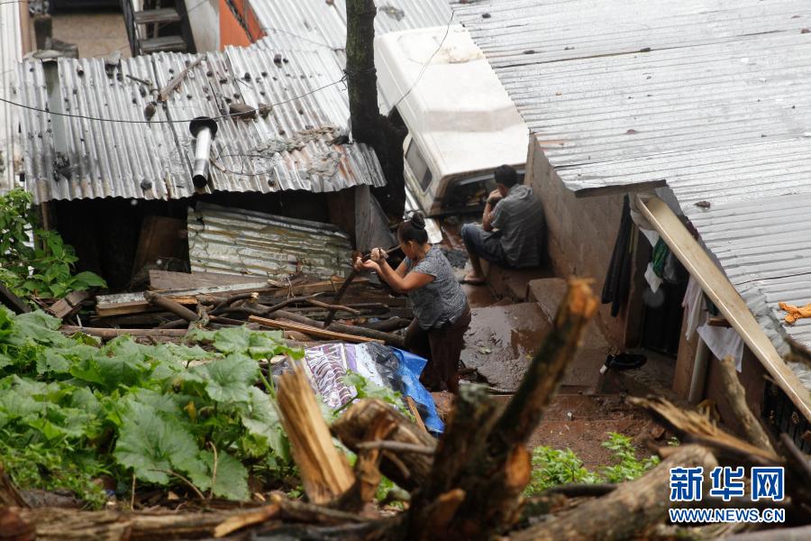 11月19日,在洪都拉斯特古西加尔巴,当地民众清理受灾现场。