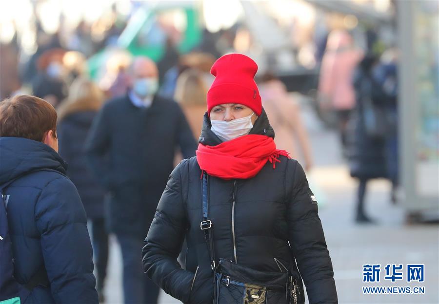 11月20日,行人在白俄罗斯首都明斯克佩戴口罩出行。 据白俄罗斯卫生部20日消息,过去24小时白新增确诊病例1457例,累计120847例;累计死亡1081例;累计治愈100749例。 新华社发(任科夫摄)