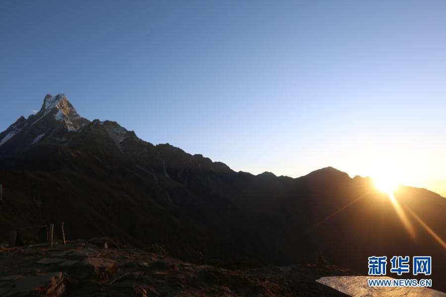 这是11月11日在尼泊尔安纳布尔纳地区拍摄的日出景色。