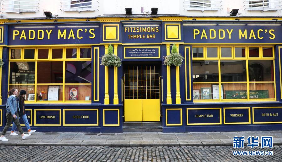 11月21日,行人经过爱尔兰都柏林街头关闭的酒吧。新华社发