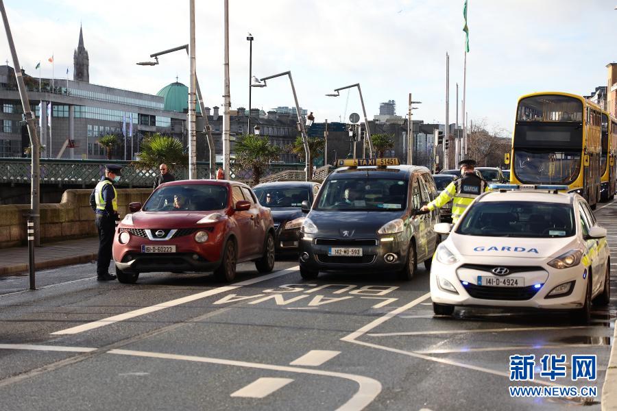 11月21日,警察在爱尔兰都柏林检查过路车辆。新华社发