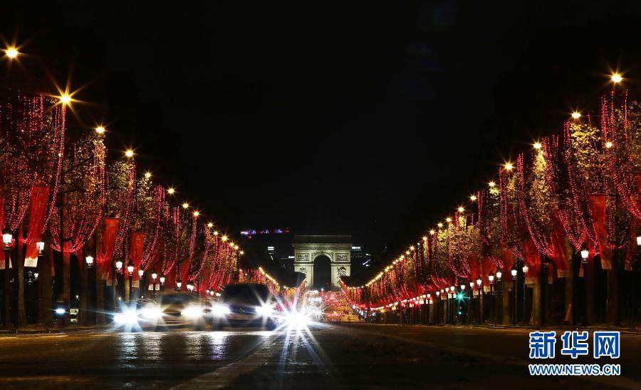 11月22日,法国巴黎香榭丽舍大街被灯饰点亮。