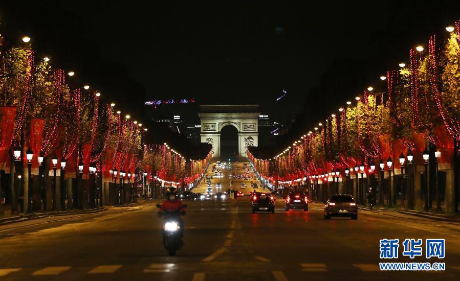 11月22日,法国巴黎香榭丽舍大街被灯饰点亮。新华社记者 高静 摄
