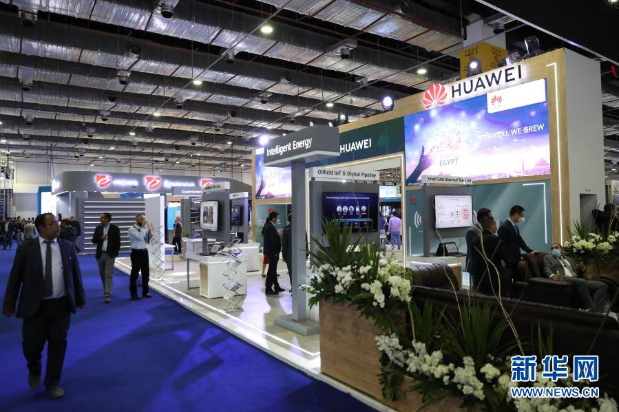 这是11月22日在埃及开罗信息通信技术展上拍摄的华为展台。