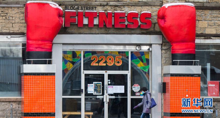 11月23日,在加拿大多伦多,一名戴口罩的行人路过一家关闭的健身俱乐部。新华社发(邹峥摄)