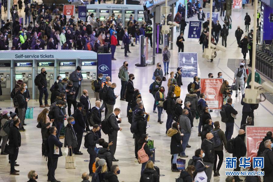 11月23日,人们在英国伦敦滑铁卢车站候车。