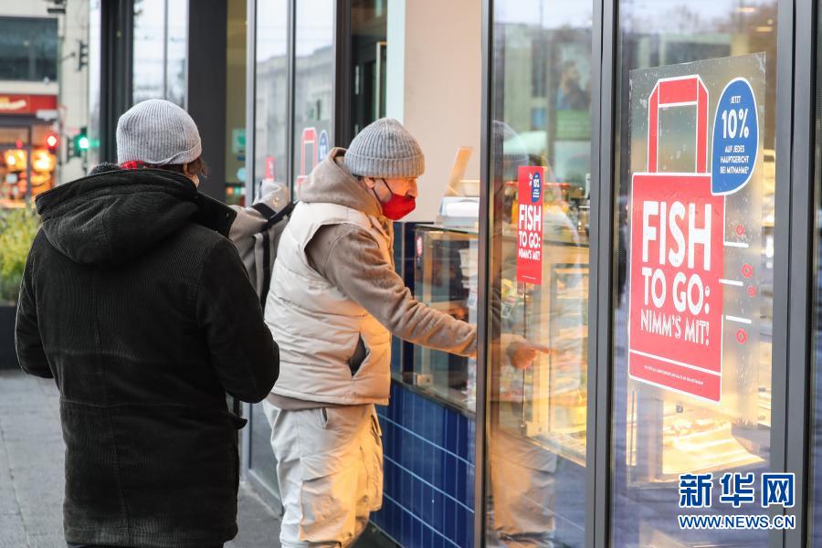 11月26日,在德国首都柏林,人们在一家餐馆购买外带食物。