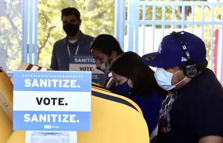 美国洛杉矶选民参加大选提前投票