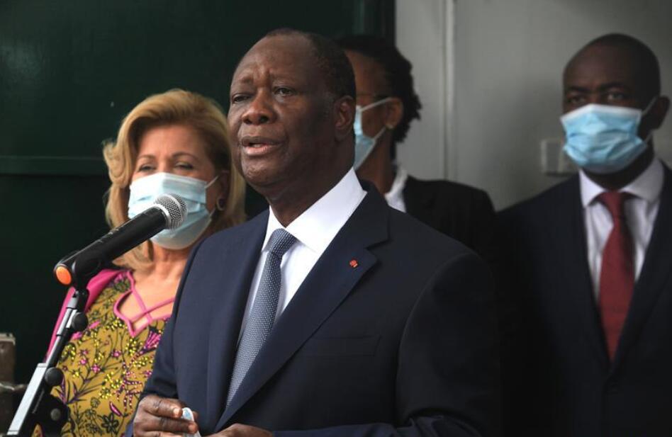 10月31日,在科特迪瓦阿比让,现任总统瓦塔拉在投票后发表讲话。 科特迪瓦31日举行总统选举,包括现任总统瓦塔拉在内共有4名候选人参选。