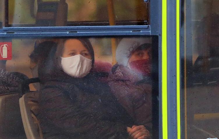 11月12日,人们戴着口罩在白俄罗斯首都明斯克市中心出行。 明斯克市政府决定12日起,人们在商场、学校、药店、体育场馆和银行等公共场所及乘坐公共交通工具时必须佩戴口罩。