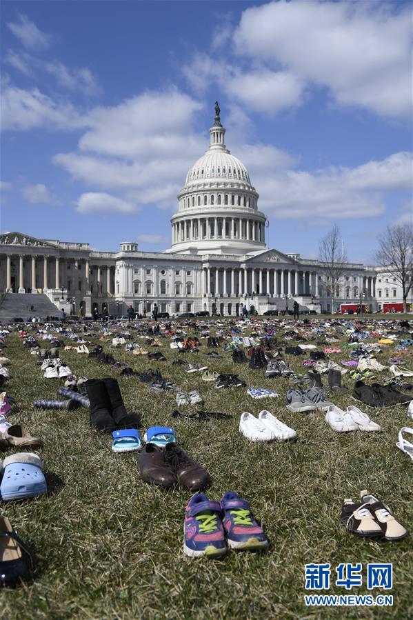 美国民众国会山前摆7000双鞋纪念枪击事件中遇难儿童(高清组图)