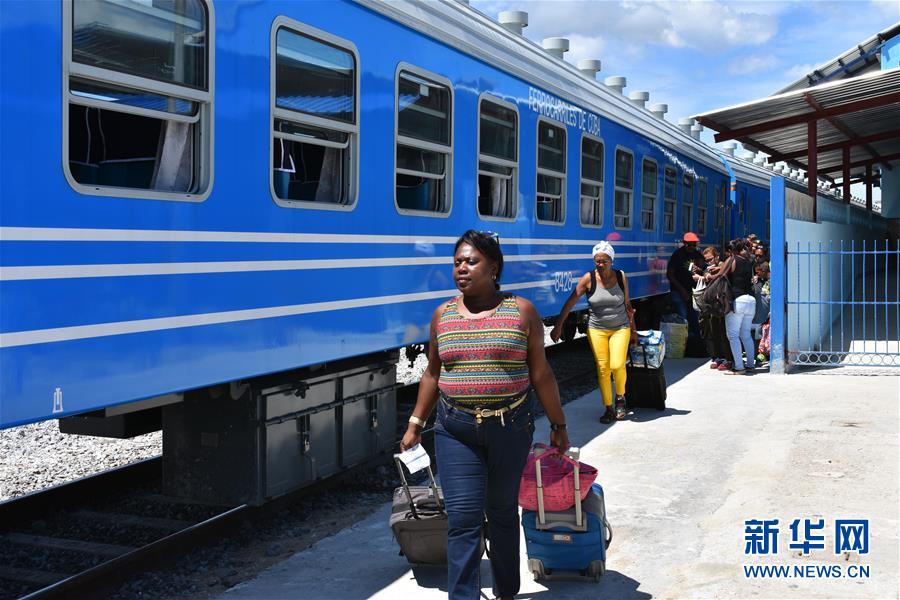 7月13日,在古巴首都哈瓦那,乘客准备登上一列由中国设计并生产的铁路客车组成的列车。新华社记者 朱婉君 摄