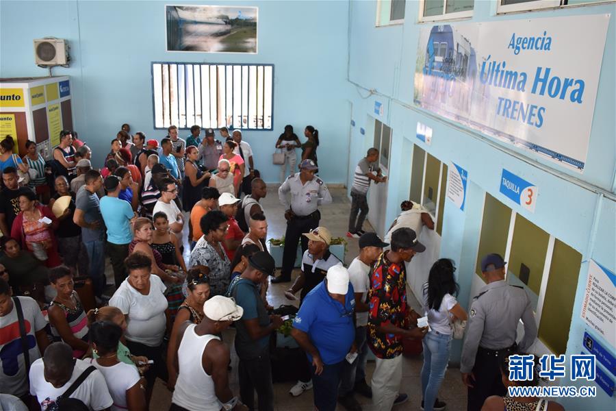 7月13日,在古巴首都哈瓦那,乘客在哈瓦那中央火车站内购票。新华社记者 朱婉君 摄