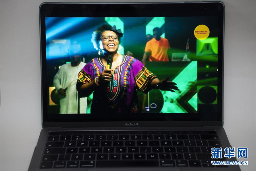 这是8月30日在英国伦敦拍摄的播放诺丁山狂欢节线上表演的电脑屏幕。 新华社发(雷伊·唐摄)