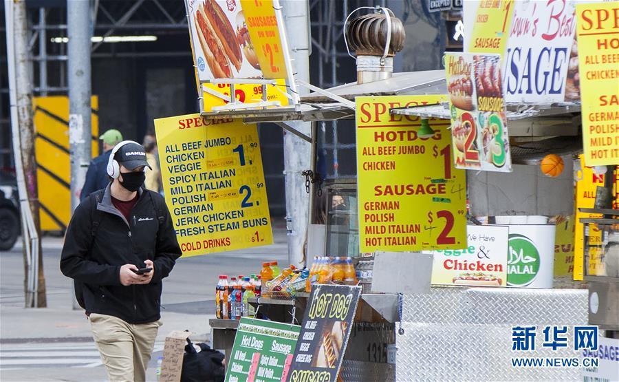 11月5日,在加拿大多伦多,一名戴口罩的男子经过一个街头热狗摊。 截至当日下午,加拿大累计新冠确诊病例上升至250913例,累计死亡病例10381例。 新华社发(邹峥摄)