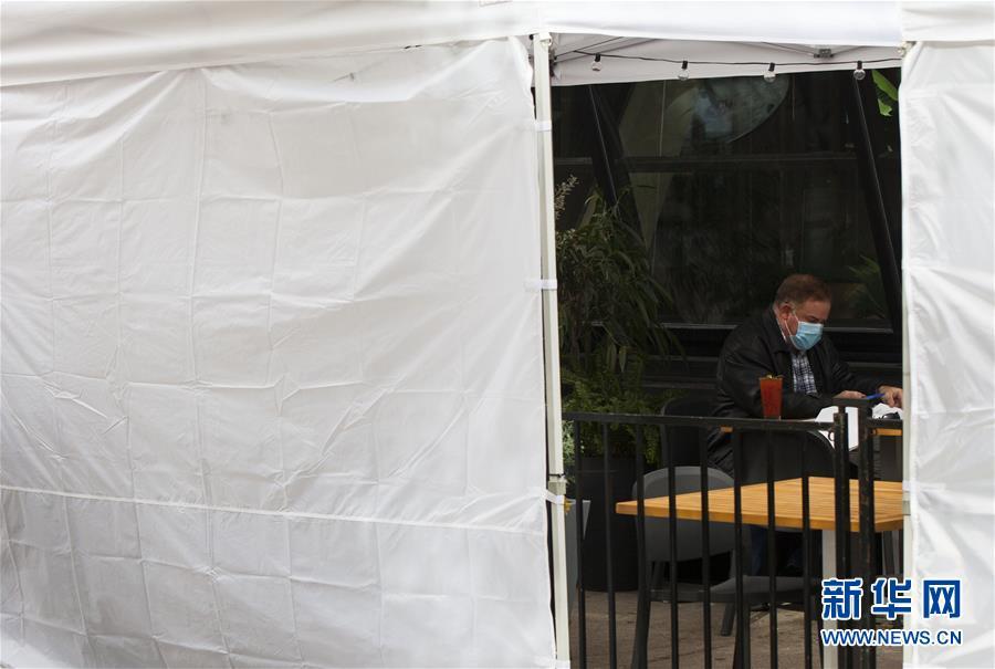 11月5日,在加拿大多伦多,一名戴口罩的男子在一家餐厅的室外区用餐。 截至当日下午,加拿大累计新冠确诊病例上升至250913例,累计死亡病例10381例。 新华社发(邹峥摄)