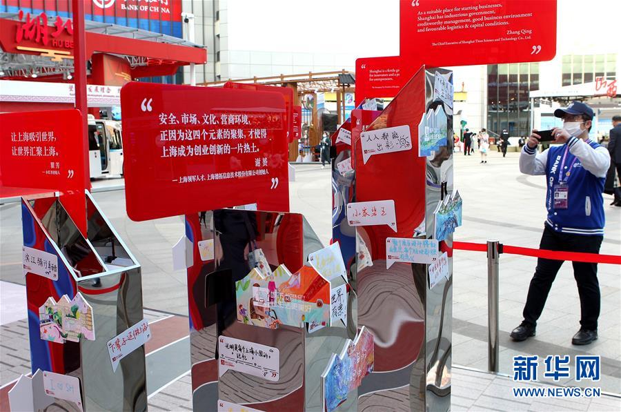 11月5日,参观者在上海综合馆观摩浏览。 第三届中国国际进口博览会设置了精彩纷呈的人文展示项目,帮助参加进博会的国内外客商了解中国地方文化特色,促进人文交流。 新华社记者 陈飞 摄