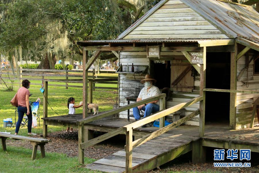 11月14日,在美国路易斯安那州新奥尔良,人们从德斯特雷汉种植园小木屋旁走过。新华社发(魏兰摄)