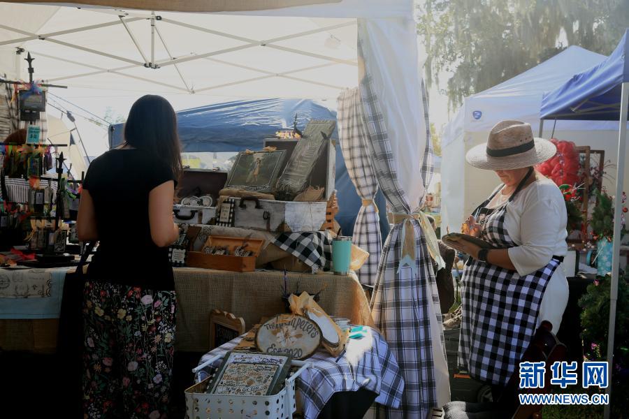 11月14日,在美国路易斯安那州新奥尔良,一名女子在德斯特雷汉种植园金秋节上选购手工艺品。新华社发(魏兰摄)