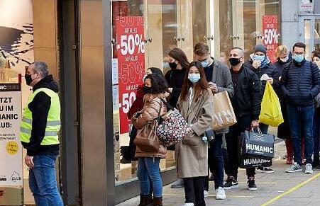 维也纳市民在措施升级前的周末扎堆来到商场购物,以避免措施升级可能造成的购物不便。